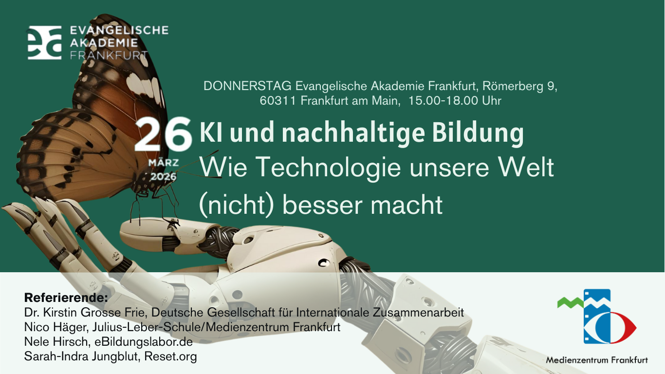 Egal ob es um die Förderung von Bildung oder Gesundheit, Armutsbekämpfung oder Klima- und Umweltschutz geht – für die Arbeit an den 17 globalen Nachhaltigkeitszielen (SDG) wird künstlicher Intelligenz (KI) ein großes Potenzial zugemessen. Gleichzeitig steht die Technologie in der Kritik, globale Problemlagen zu verschärfen – beispielsweise durch hohen Ressourcenverbrauch, Desinformation, Klick-Arbeit und verschärfte Ungleichheitsstrukturen. In diesem Spannungsfeld zwischen Hoffnung und Risiko, Cure und Curse, bohren wir nach: Wie lässt sich künstliche Intelligenz so einsetzen, dass sie zu einer nachhaltigen Entwicklung beiträgt – und nicht neue Ungleichheiten schafft? Das beleuchten vier Impulse aus den Bereichen Klima, Bildung, Gesundheit und globale Partnerschaften. Anschließend wird gemeinsam diskutiert, wie sich diese Perspektiven in Unterricht und Bildungspraxis integrieren lassen – damit KI nicht nur Thema ist, sondern Teil nachhaltiger Lernprozesse wird.