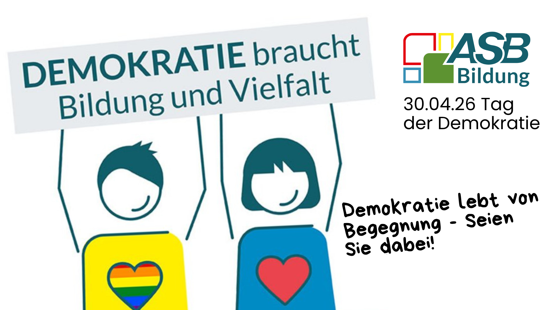 Am 30.04.2026 lädt ASB Bildung zum gemeinsamen Tag der Demokratie. In mehreren Quartieren finden Veranstaltungen und Events statt. Gerahmt wird der Tag von einem zentralen Mitmach- und Familienfest und einer Podiums-Veranstaltung in der Orangerie im Güntherburgpark.